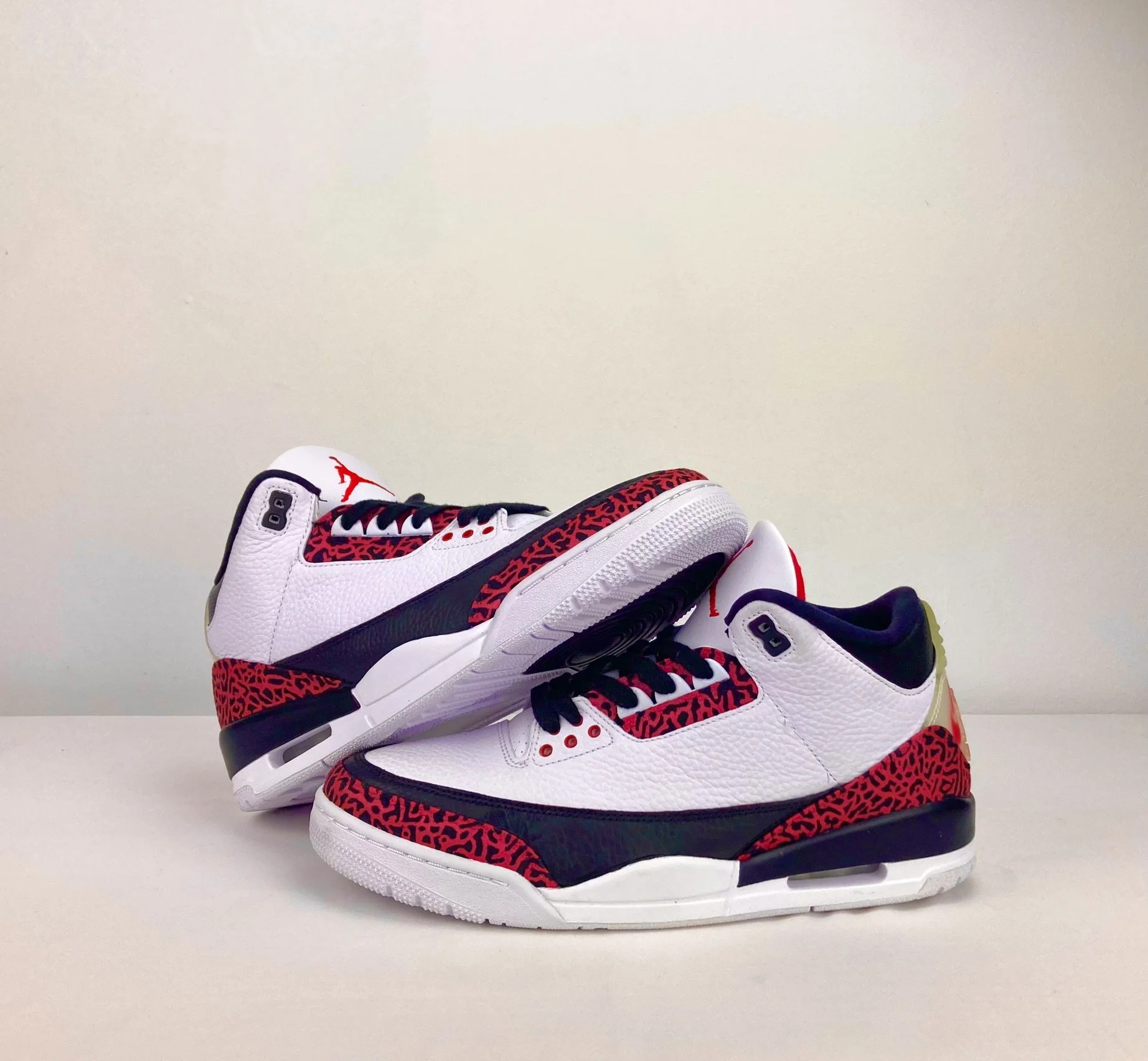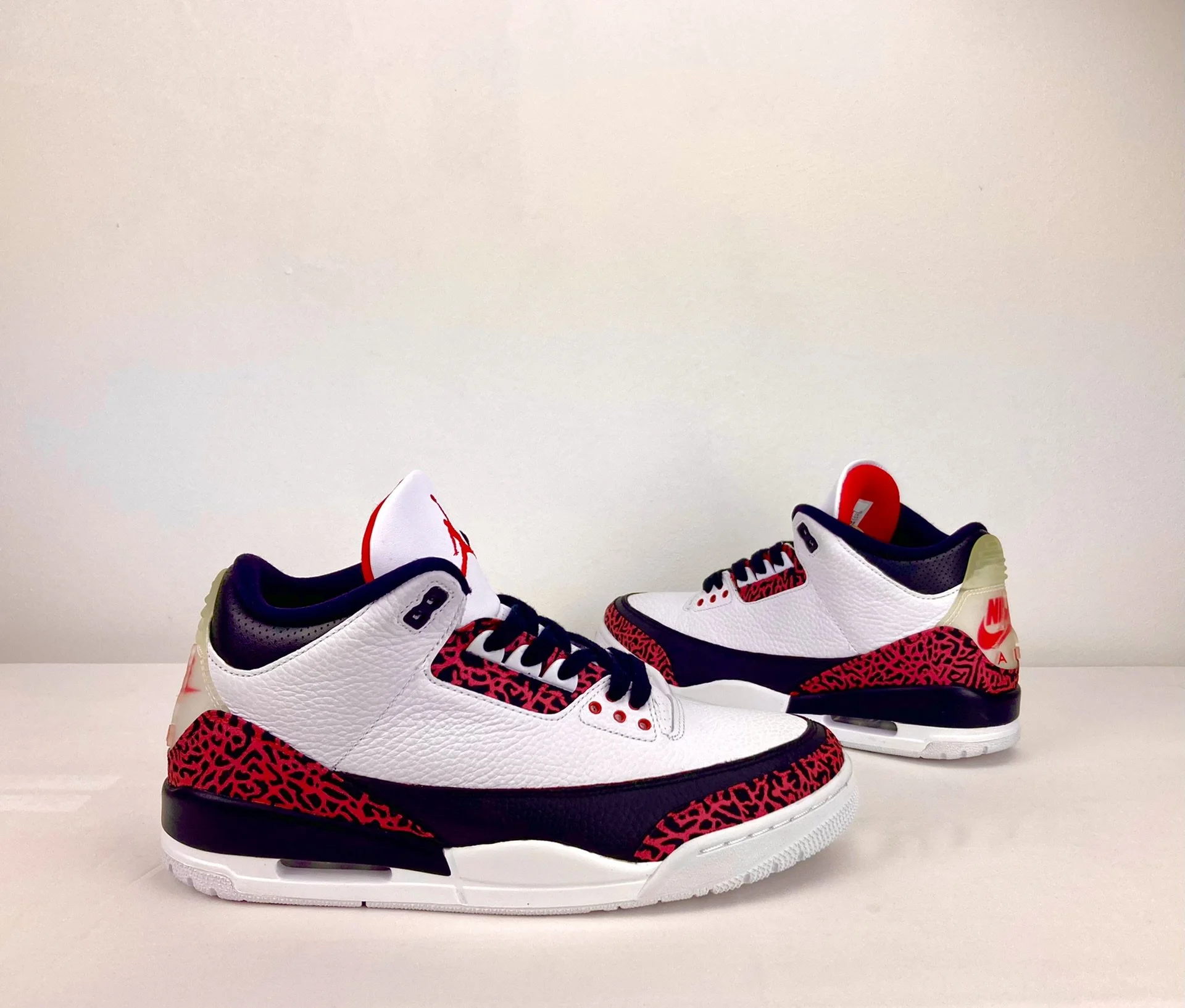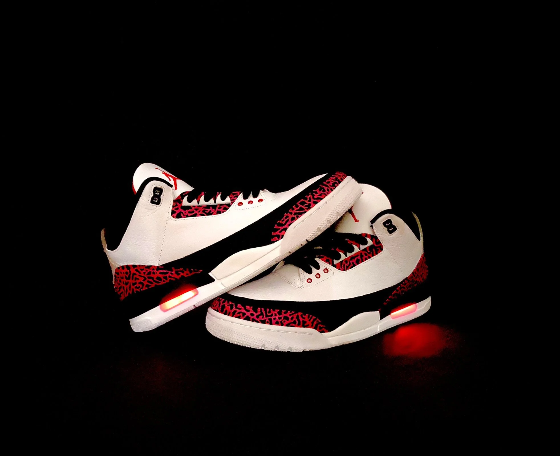 Lights UP Jordan 3 Elektro KicksNike Jordan 3 mit eingebauten LEDs, Druckschalter und Akkus Inklusive elephant PRint im Erlmut Riot Red